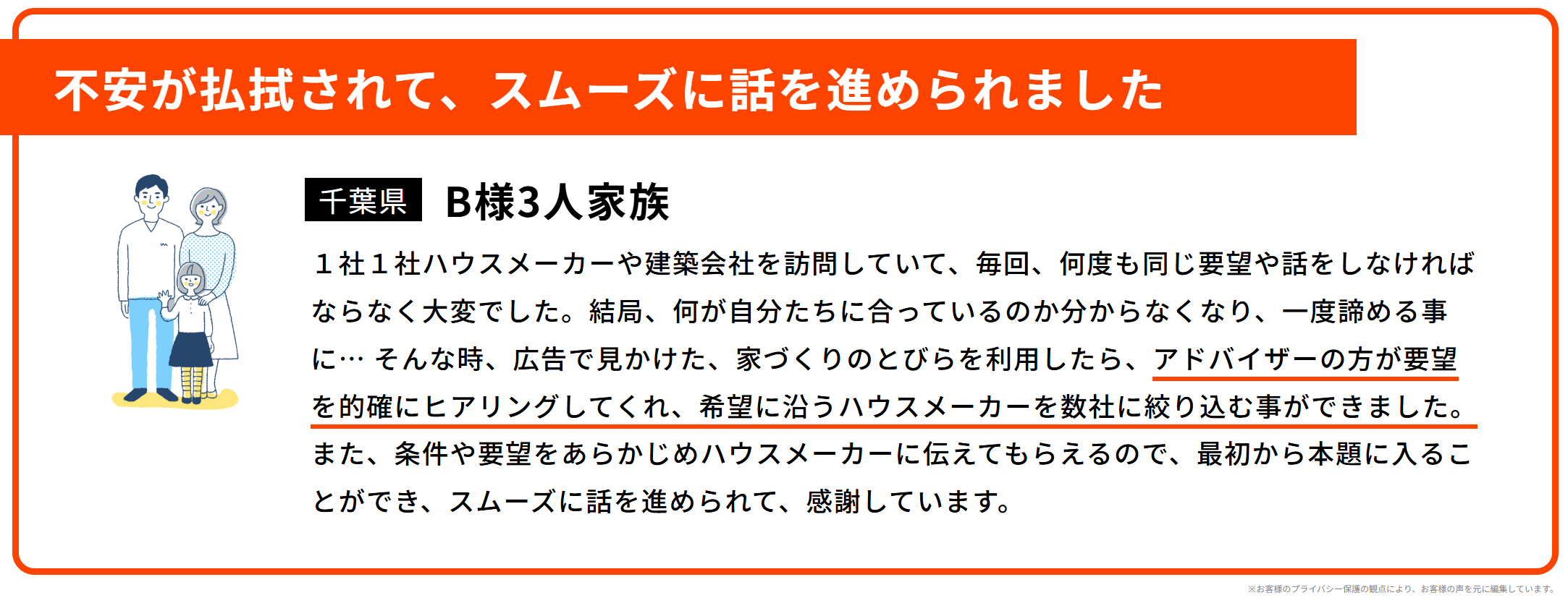 言い換えると、あなたの夢や希望を言語化して、それを叶えてくれるハウスメーカーだけを厳選して、マッチングしてくれるサービスがあれば、バッチリってことですよね?