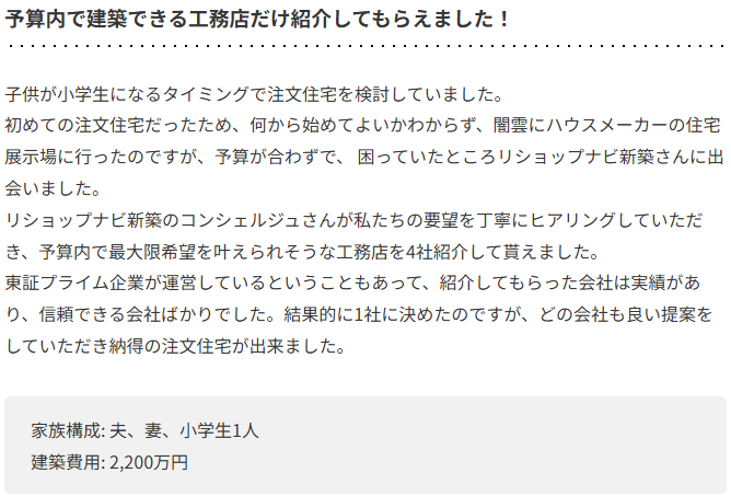 その中で、コンシェルジュが予算内で建ててくれる建築会社だけを厳選して紹介してくれます。
