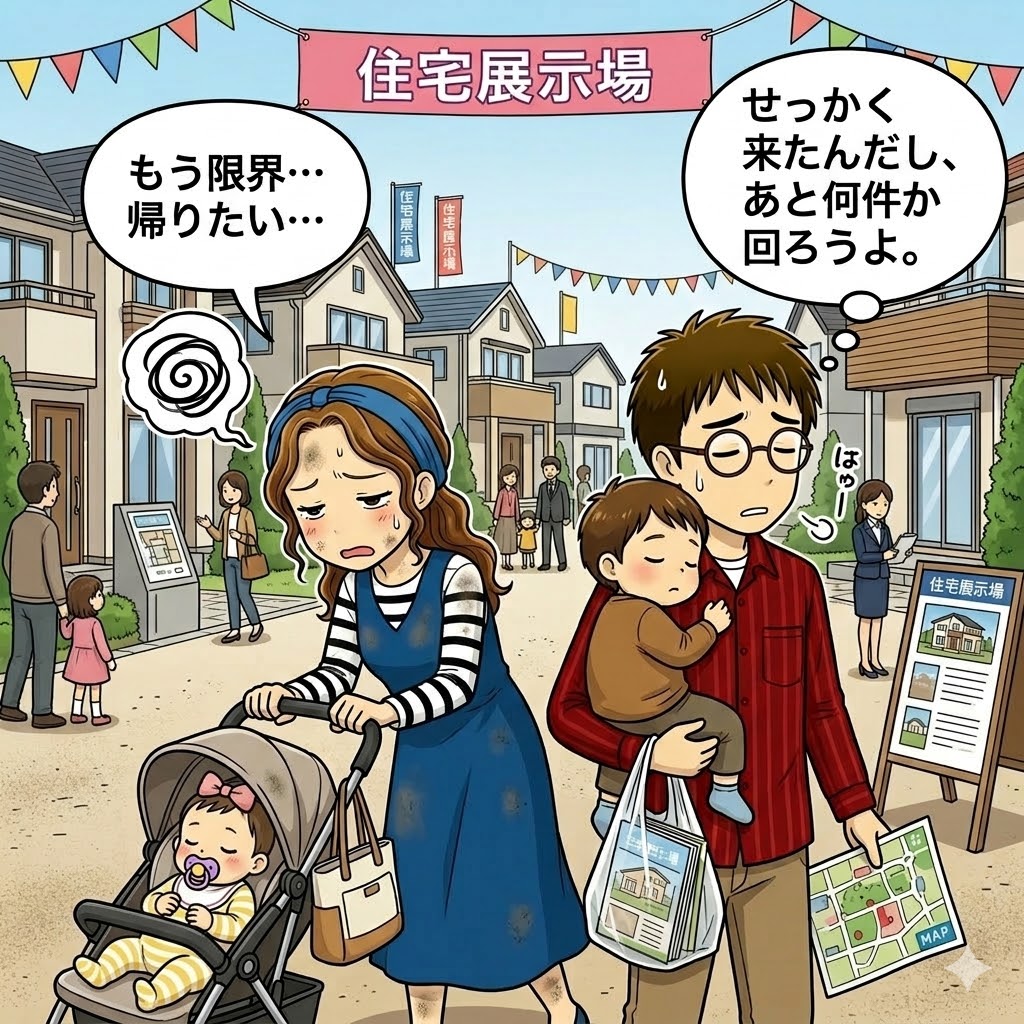 家族で休日に住宅展示場を回るのは、想像するだけでも楽しそうですね。ただ、小さいお子さんや赤ちゃんがいると、色々大変なこともあるようです。